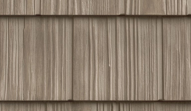 Textured panels resembling hand-split cedar shakes, adding depth and character to any exterior.
